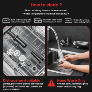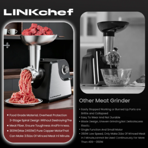 Make homemade burgers, sausages, meatballs, and more with this high-performance electric meat grinder. Designed for efficiency, safety, and versatility, this grinder is perfect for home kitchens, BBQ enthusiasts, and anyone who enjoys cooking fresh, high-quality ground meat.