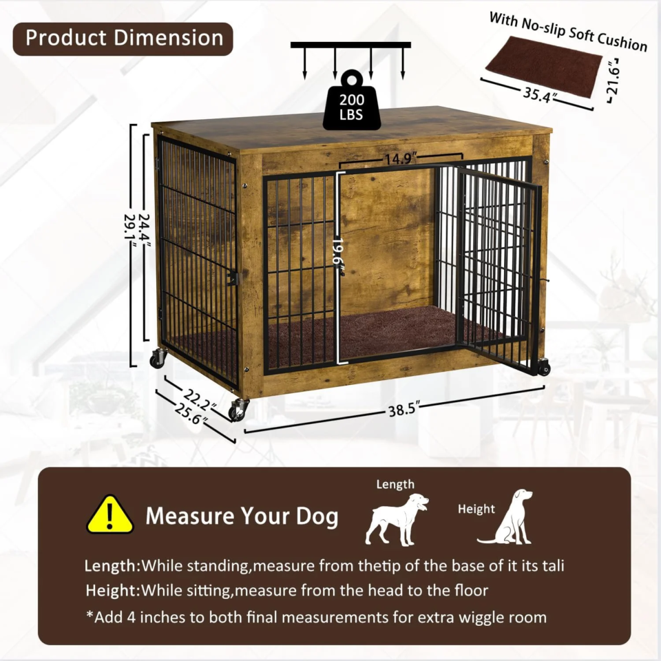 Upgrade your home with this stylish and functional furniture dog crate, designed to provide a comfortable and safe space for your dog while doubling as a practical piece of home furniture. Perfect for living rooms, bedrooms, or any indoor space, this crate combines durability, mobility, and modern design to suit a variety of home styles.