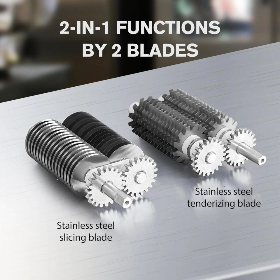Tenderizing Blades: Break down tough fibers in beef, chicken, venison, and more to enhance texture and marinade absorption